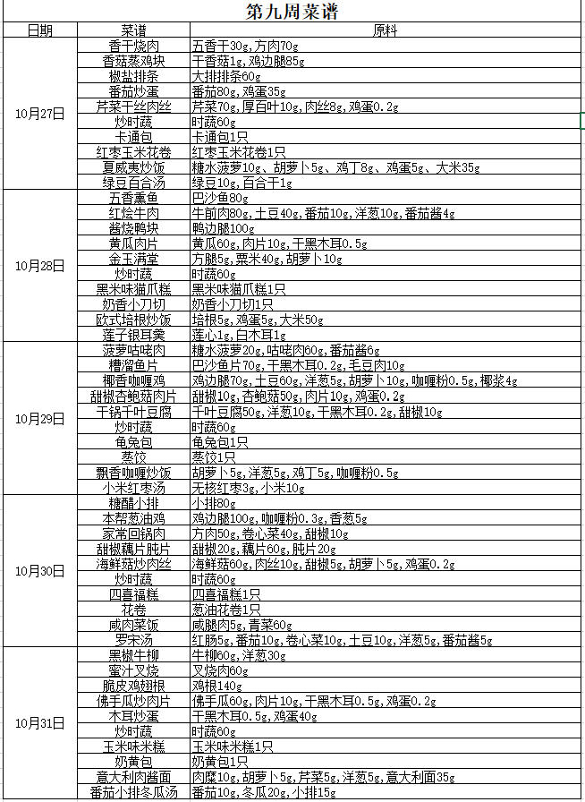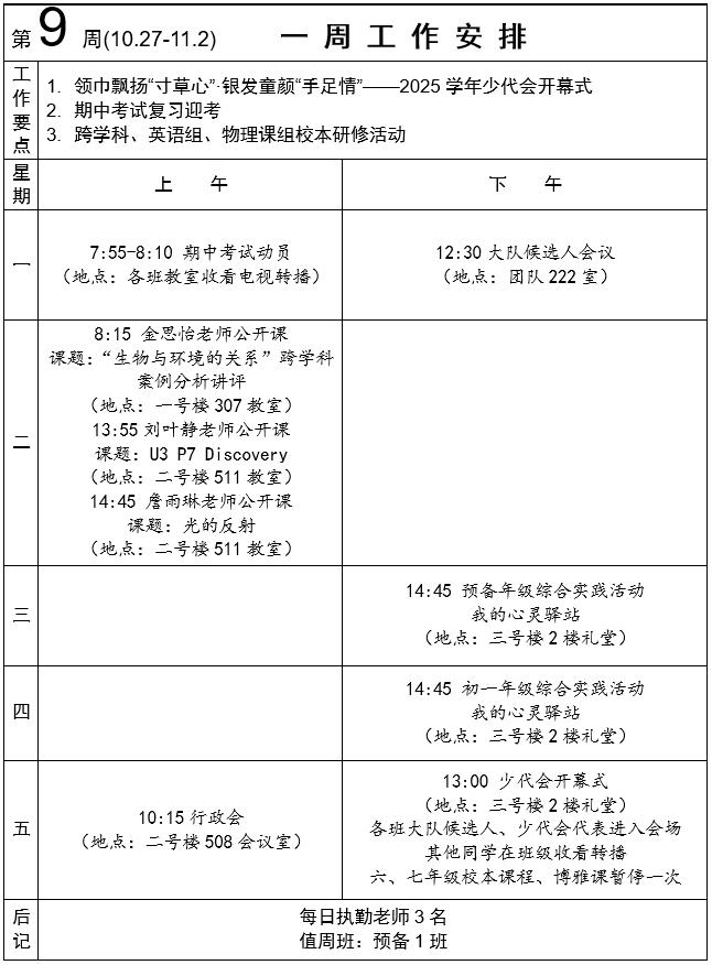 2025-1-9 一周工作安排及学生菜谱
