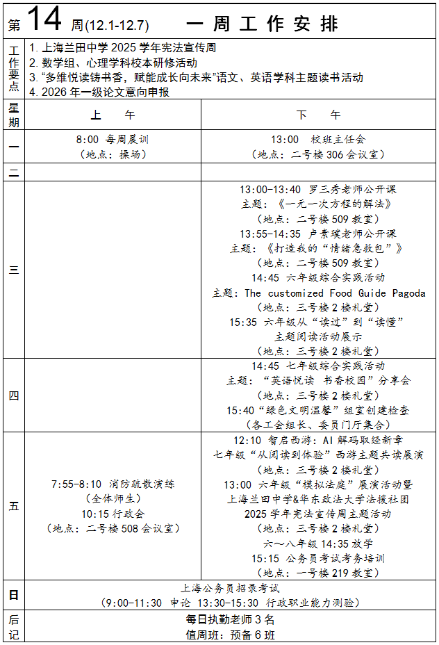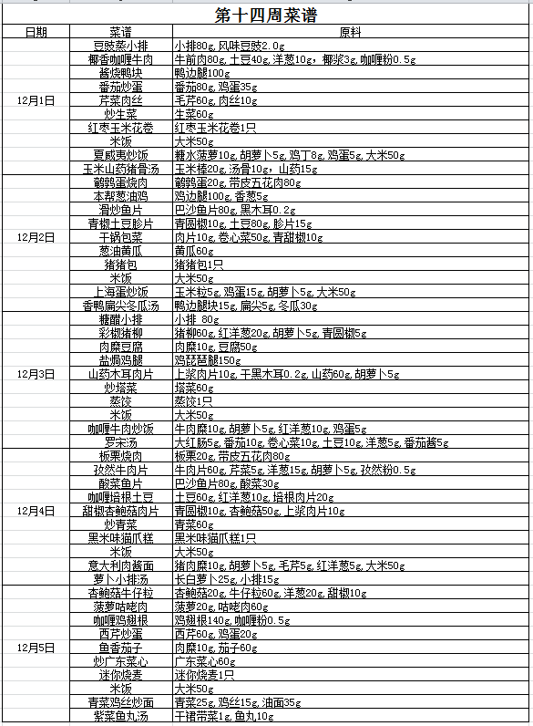 2025-1-14 一周工作安排及学生菜谱